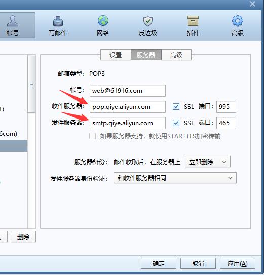 接收pop服務(wù)器:pop.qiye.aliyun.com ssl端口995