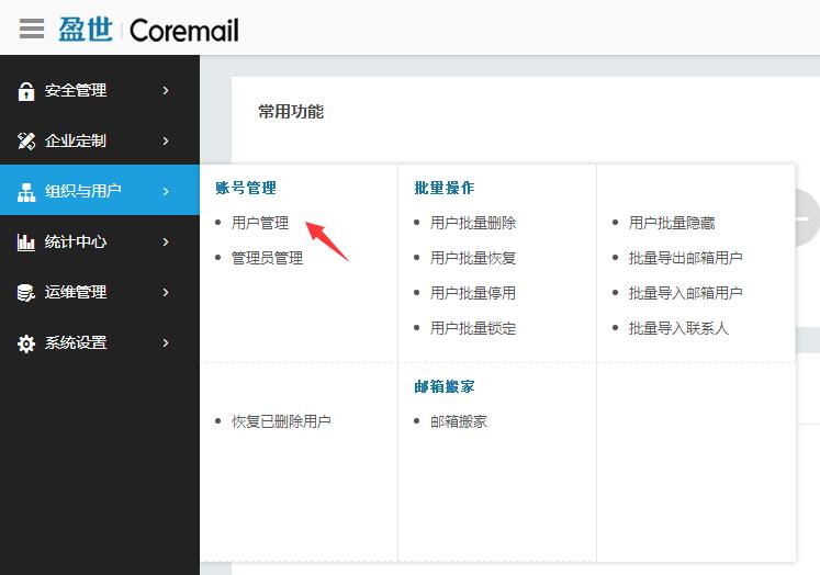2.登陸后選擇左側(cè)菜單組織與用戶>>點(diǎn)擊用戶管理