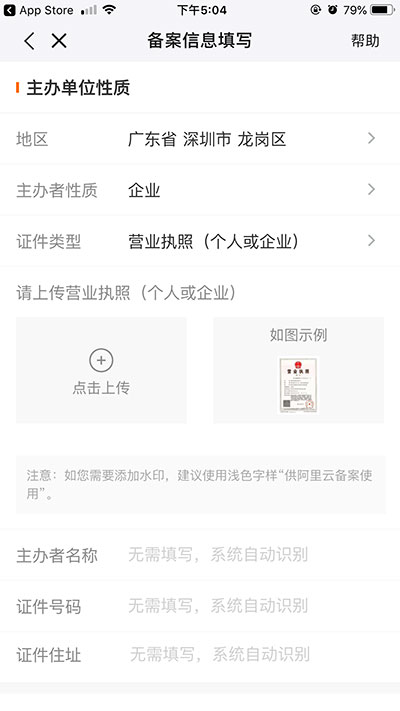 選擇公司所在地區(qū)》主辦者性質(zhì)選擇企業(yè)》證件類型選擇營業(yè)執(zhí)照》點擊上傳營業(yè)執(zhí)照